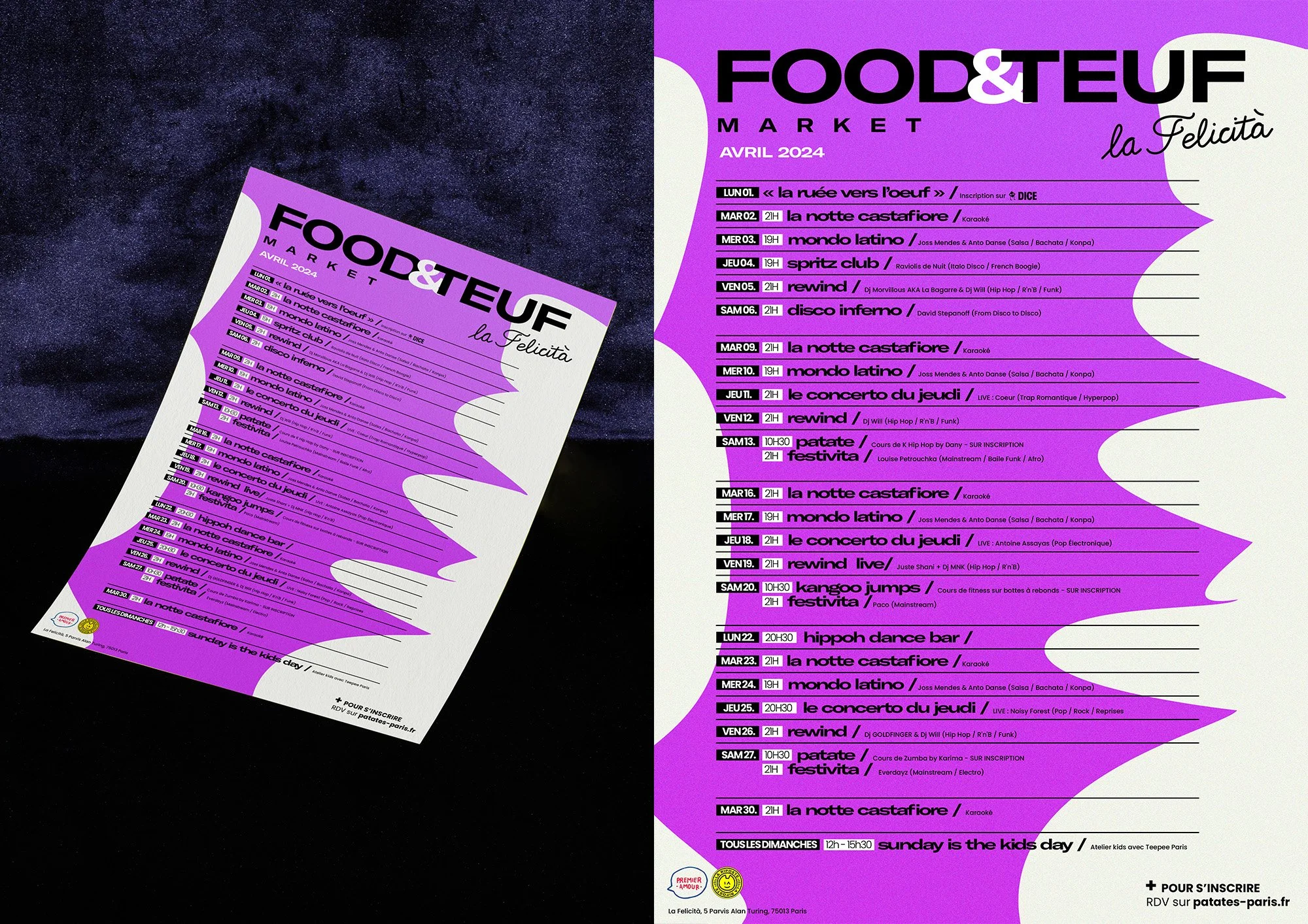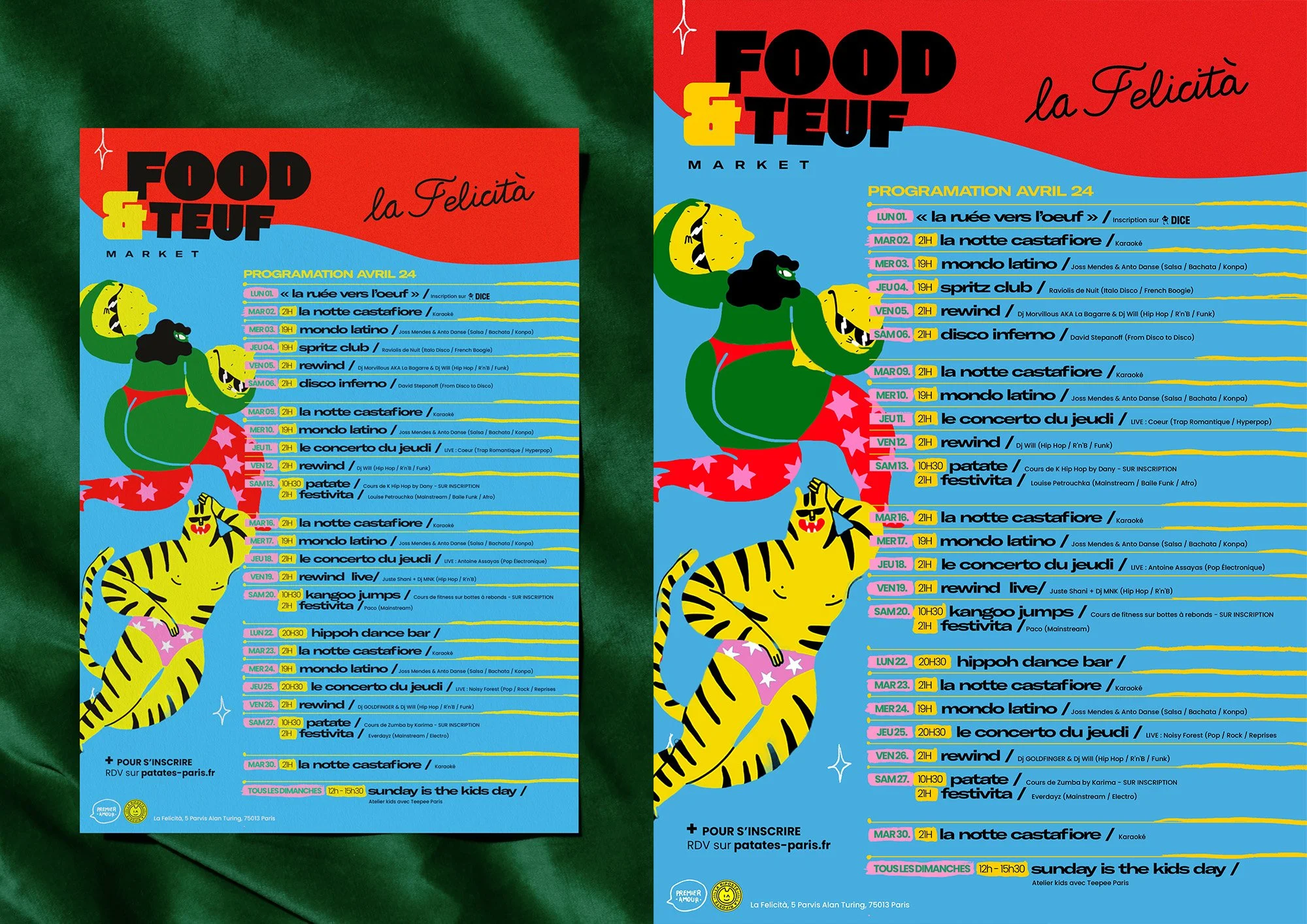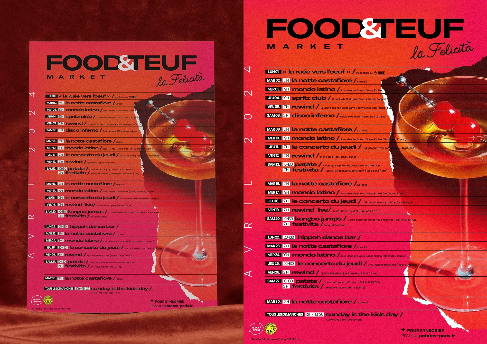 Pour la rentrée 2024, Big Mamma souhaite mettre en place une nouvelle manière de communiquer ses events mensuels auprès des clients de la Felicita. Voici le travail proposé et les inspis.